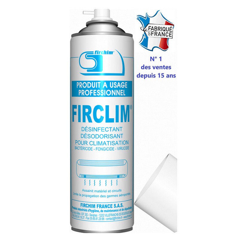 Spray Firclim Firchim 500 ml : désinfectant climatisation professionnel, antibactérien, fongicide et virucide. Fabriqué en France.